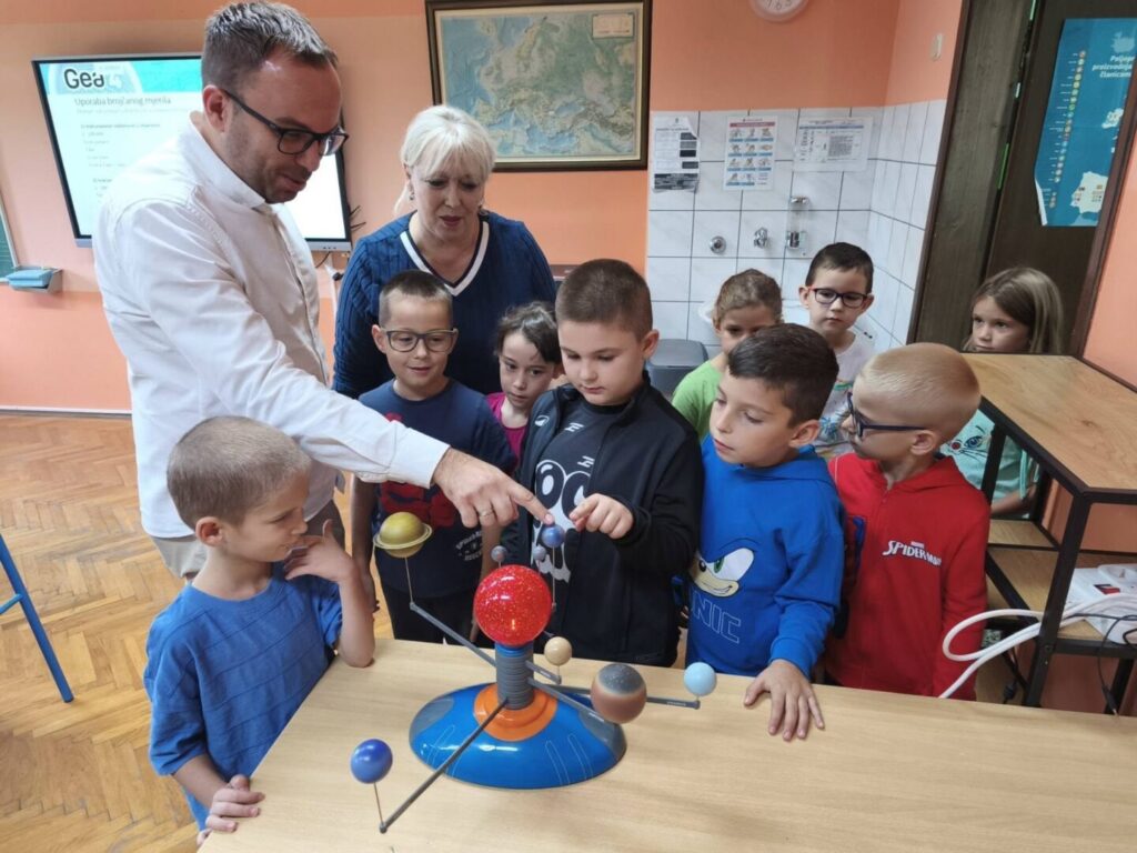 Učenici prvog razreda krenuli su u svoju prvu veliku pustolovinu – obilazak škole s učiteljicom. Znatiželjni i veseli, upoznali su sve djelatnike, ali na svoj, pomalo maštovit način. Za ravnateljicu su zaključili da „špijunira“ na kamerama, tajnik im se činio kao da živi u tajnoj sobi, a kod pedagoginje su zbunjeno gledali tablicu množenja. Najveće oduševljenje doživjeli su na satu geografije, gdje su, ugledavši model svemira, ozbiljno izjavili da bi najradije živjeli na – Saturnu!