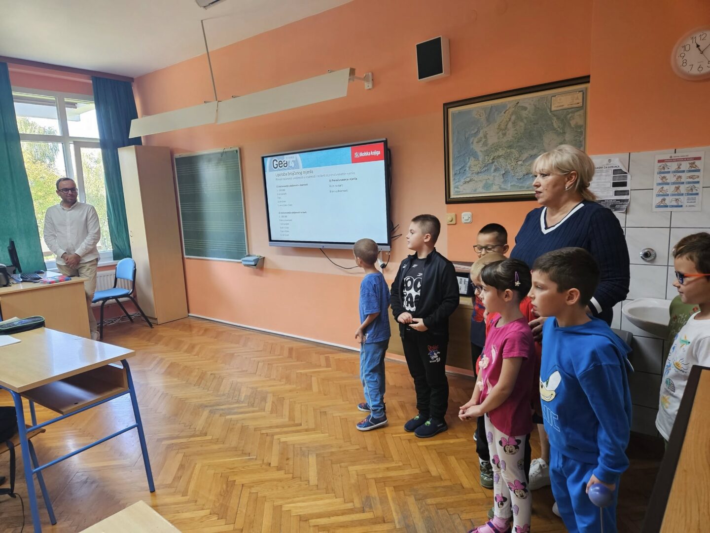 Učenici prvog razreda krenuli su u svoju prvu veliku pustolovinu – obilazak škole s učiteljicom. Znatiželjni i veseli, upoznali su sve djelatnike, ali na svoj, pomalo maštovit način. Za ravnateljicu su zaključili da „špijunira“ na kamerama, tajnik im se činio kao da živi u tajnoj sobi, a kod pedagoginje su zbunjeno gledali tablicu množenja. Najveće oduševljenje doživjeli su na satu geografije, gdje su, ugledavši model svemira, ozbiljno izjavili da bi najradije živjeli na – Saturnu!