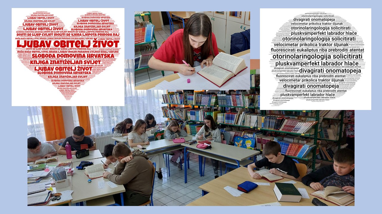 Učenici su se služili rječnicima hrvatskoga jezika u potrazi za „najljepšim i najtežim“ riječima hrvatskoga jezika. Listajući