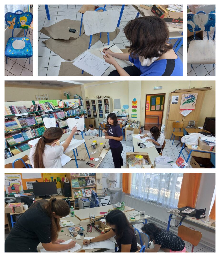 Naše ovogodišnje osmašice su ponovno posegnule za knjigama iz školske knjižnice i podsjetile se svojih omiljenih junaka iz romana za djecu i mlade. Tijekom rujna i listopada skicirale su na papiru, a potom i stolicama likove i motive iz odabranih romana. Budući da učenice imaju mnogo školskih, izvannastavnih i izvanškolskih obveza, s radionicama oslikavanja stolica nastavit ćemo za vrijeme zimskih praznika i tijekom nastavne godine. Rezultate našega kreativnog rada pokazat ćemo po završetku svih aktivnosti i otkriti vam koje su likove učenice ovaj put odabrale.