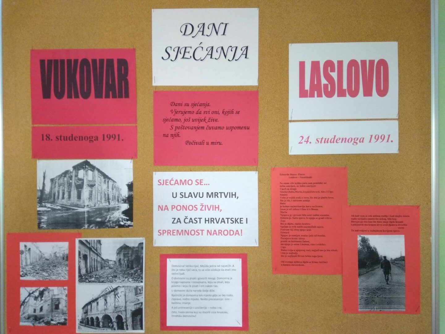 Dani su sjećanja. Sjećamo se žrtve koja nam je donijela dah slobode. Sjećamo se, ponosimo i oplakujemo žrtve koje su nam omogućile da danas imamo domovinu i zovemo ju njezinim imenom. Vjerujemo da svi oni, kojih se sjećamo, još uvijek žive u nama. Naučena tugovati, naša srca neka zauvijek budu dom uspomeni na naše heroje. Čuvajmo ih od zaborava.